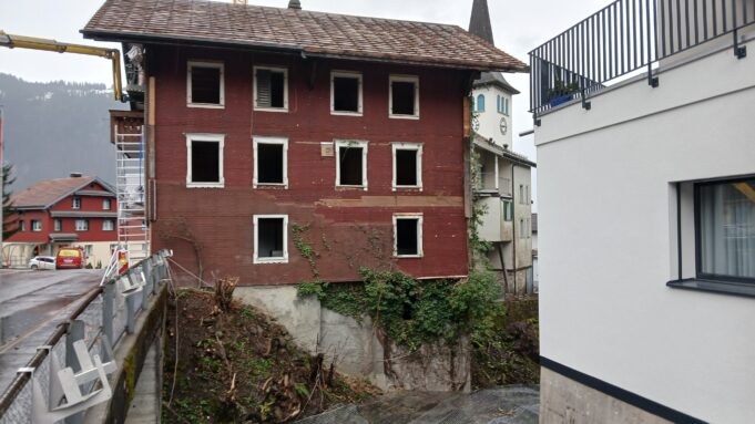 Im Rahmen der Abbrucharbeiten mussten zwei viergeschossige Holzbauten, das Dörflihaus und das Posthaus, vollständig rückgebaut werden. Beide Gebäude befanden sich in unmittelbarer Nähe zu einem sehr schützenswerten Objekt und stellten aufgrund ihrer Lage hohe Anforderungen an Planung und Ausführung.
