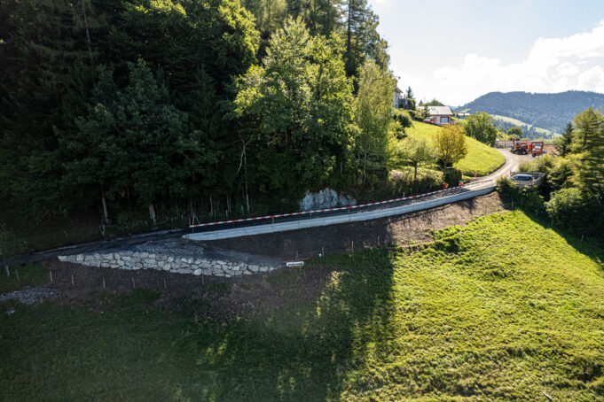 Im Zusammenhang mit den Sanierungsarbeiten der Rämslistrasse wurden die defekten Entwässerungsleitungen und Schächte ersetzt, die Strassenkofferung und der Strassenbelag neu eingebaut sowie der Zugang (Kuhweg) zum Wiesland mit einer Natursteinmauer erstellt. Im Bereich Haurüti wurde eine neue Stützkonstruktion zur Sicherung der Fahrbahn und bei der Abfall-Entsorgungsstelle ein neuer Unterflurcontainer (UFC) erstellt.