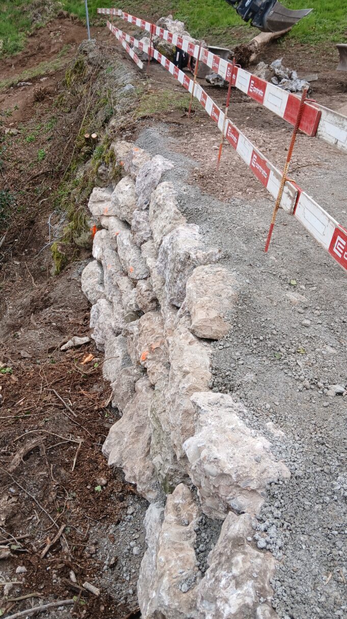 Der Rückbau der Mauer erfolgte unter grosser Vorsicht und in Teilabschnitten, um die Stabilität des Hanges jederzeit zu gewährleisten. Die neue Mauer wurde anschliessend auf einem nahegelegenen Felsvorsprung wieder aufgebaut, um die Standfestigkeit langfristig zu verbessern und die Sicherheit im betroffenen Bereich nachhaltig zu erhöhen.